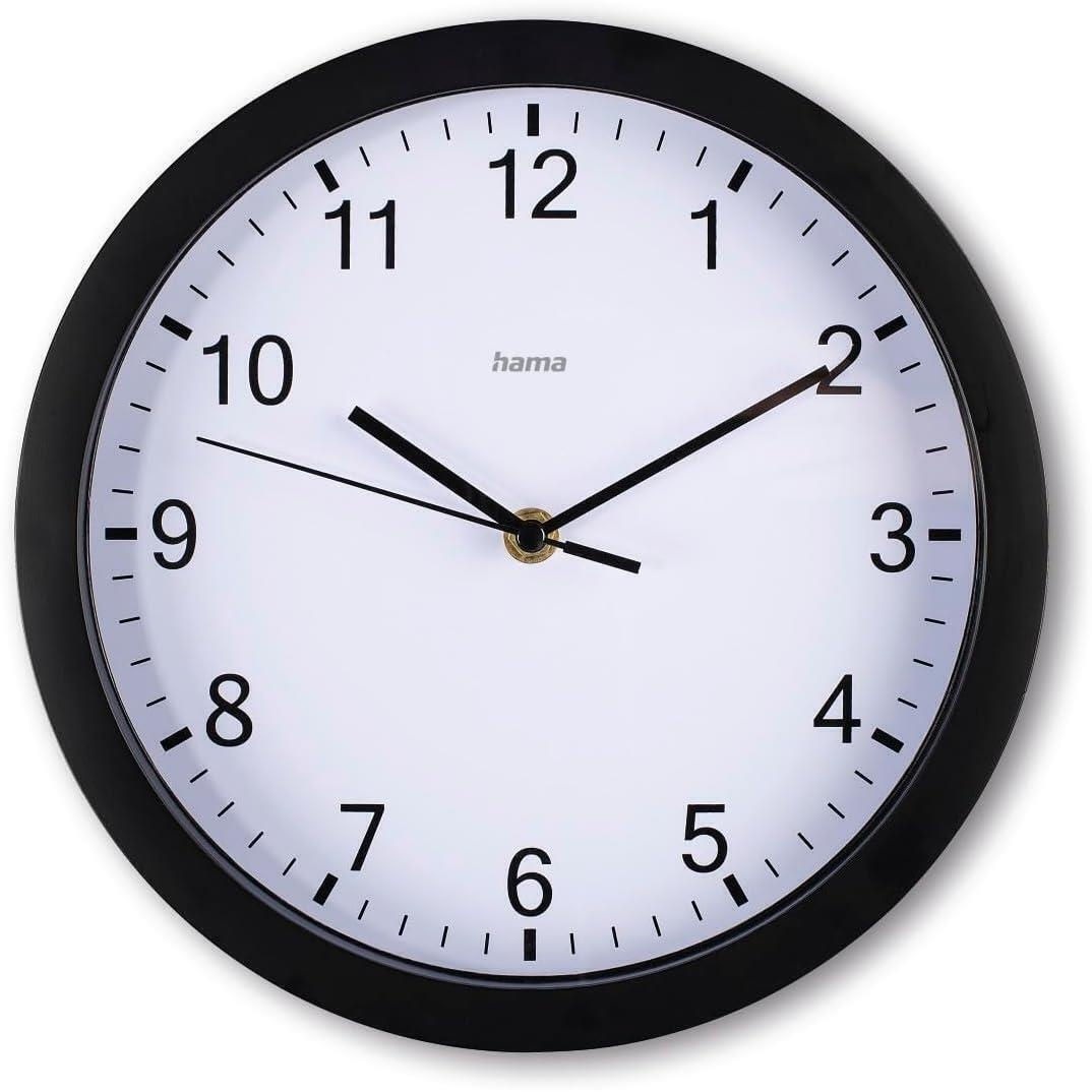 Ceasul de perete negru Hama „Elba” este o soluție elegantă și versatilă pentru orice interior. Carcasa sa minimalistă, cu diametrul de 25 cm, se integrează armonios în bucătărie, birou, living sau dormitor.