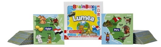 BrainBox Lumea - Joc de carti distractiv si educativ, pentru copii peste 8 ani BrainBox este un joc de carti distractiv de memorie si de observare, care iti va testa cu adevarat atentia la detalii. Raspunsurile la toate intrebarile sunt chiar acolo, pe cartile din fata ta, dar având doar 10 secunde pentru a studia cartea aleasa, vei reusi sa le intelegi pe toate? Aceasta editie mondiala a jocului iti testeaza cunostintele despre tarile din intreaga lume: oameni, cultura si, bineinteles, repere celebre. BrainBox Lumea contine 55 de carti de joc care reprezinta o gama variata de tari, din Regatul Unit pâna in SUA, din Grecia pâna in Ghana, din Malaiezia pâna in Mexic si de peste tot intre acestea. Fiecare carte de joc prezinta harta unei tari, cu capitala marcata si ilustratii desenate de mâna ale unor lucruri emblematice care alcatuiesc viata in acea natiune. Jocul va ajuta copiii sa invete despre lume, dezvoltând totodata competentele cognitive de observare si de rememorare, care stau la baza invatarii pe tot parcursul vietii.