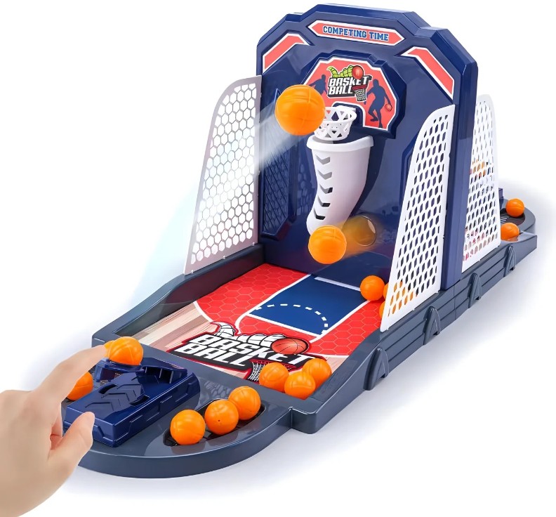 Acest joc de baschet de masă este perfect atât pentru copii, cât și pentru adulți, oferind o experiență incitantă și competitivă de pitch cu degetele. Fabricat din plastic ABS de înaltă calitate, jocul include două mini coșuri de baschet și 10 mini mingi de baschet, permițând doi jucători să meargă cap la cap într-un meci intens de baschet. Cu o dimensiune compactă de 59,5 cm x 18,5 cm x 23 cm, jocul este ușor de configurat și poate fi bucurat de jucătorii cu vârsta peste 6 ani. Indiferent dacă doriți să vă perfecționați abilitățile de baschet sau doar să vă distrați cu prietenii și familia, acest joc arcade de masă vă va oferi cu siguranță ore întregi de divertisment.
