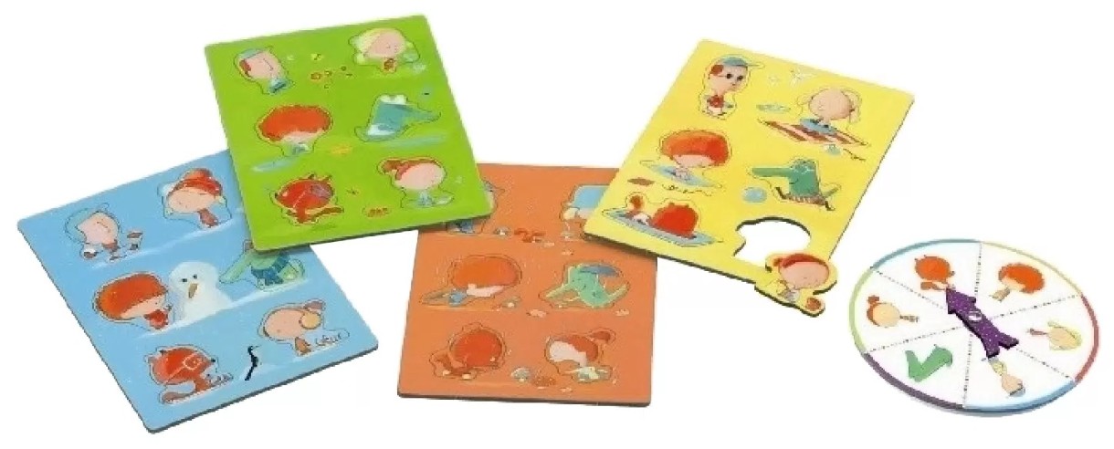In set24 de piese de puzzle, 4 cărți, disc de joc