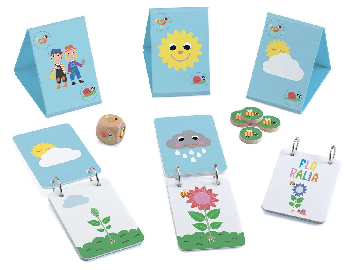 In set3 piramide prefabricate „meteo”, 4 caiete, 1 cub, 5 jetoane de albine, regulile jocului