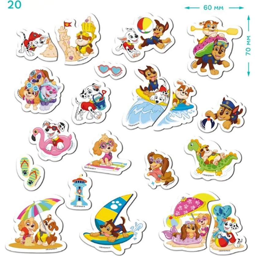 Invitați copilul în lumea jocurilor colorate cu setul magnetic „Paw Patrol Magnetic Set”! Setul conține 20 de magneți mari cu personajele preferate din serial — Chase, Skye, Marshall și alți cățeluși curajoși. Fiecare magnet prezintă scene vesele de vacanță, plajă și activități distractive, stimulând imaginația copilului și crearea propriilor povești.