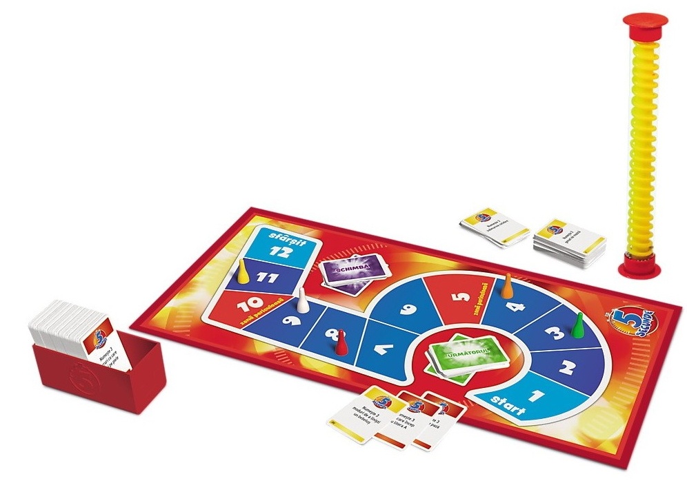 Un joc care va ajuta sa ganditi si sa vorbiti mai rapid! Suntem siguri ca puteti enumera trei rase de caini diferite! Puteti face insa acest lucru contra cronometru? Atentie, aveti doar 5 secunde la dispozitie iar adversarii abia asteapta sa gresiti! Timpul nu este de partea dumneavoastra, asa ca raspundeti chiar daca nu sunteti sigur ca este corect! Uneori veti da raspunsuri ciudate, alteori amuzante, in timp ce bilele se rotesc in temporizatorul special. Daca aveti noroc, veti putea sa va eschivati de la o anumita cerinta sau o veti putea transmite altui jucator. Distractia este asigurata atunci cand toti jucatorii ajung la final cat mai repede posibil! 5 secunde este un joc distractiv si imprevizibil, pentru familie si prieteni! Pentru 3-6 jucatori. Varsta minima peste 8 ani.