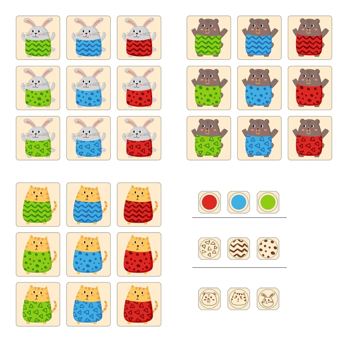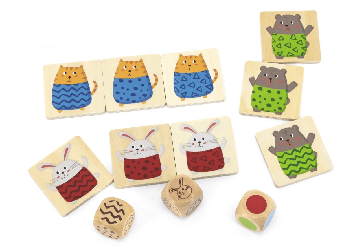 Jocul educativ din lemn „Ghicește” de la VIGA este perfect pentru distracție alături de prieteni și familie. Sarcina copilului este să arunce un număr ales de zaruri (de la 1 la 3) și să găsească animalul potrivit cu desenul corespunzător pe tricou și culoarea corectă. Jocul combină învățarea cu distracția, stimulând observarea, gândirea logică și motricitatea fină.