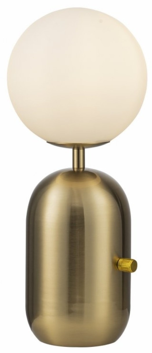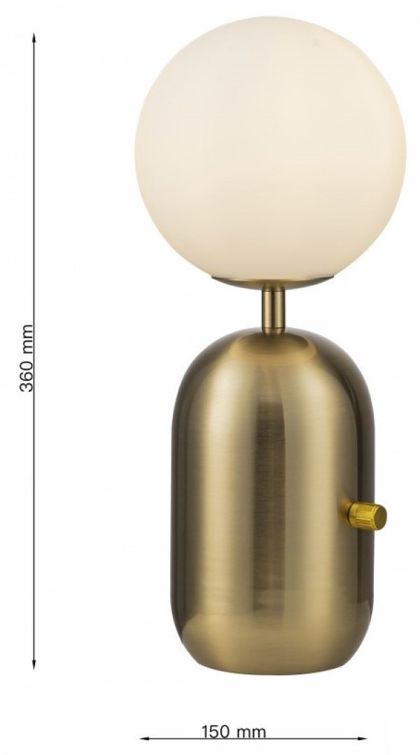 O lampă de birou rafinată, care aduce o notă de eleganță și căldură în orice ambient. Baza sa cilindrică din alamă mată îi conferă un aspect sofisticat și modern, iar abajurul sferic din sticlă opal oferă o lumină blândă și plăcută.