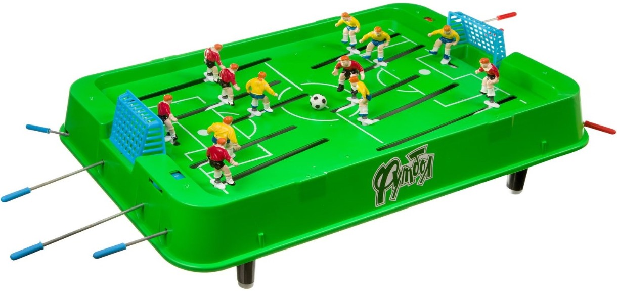 Acest joc poate fi jucat de 2 persoane, fiecare dintre ei conduce o echipă de fotbaliști, formată dintr-un portar, trei atacanți și doi apărători. Figurile sunt fixate ferm pe tije mobile, controlate de mânere speciale și se pot deplasa înainte și înapoi, precum și se pot întoarce în lateral. Terenul mare de joc poate fi așezat pe picioare și are bare de protecție pentru a împiedica mingea să zboare din el. Cu acest fotbal de masă poți aranja un meci de fotbal interesant chiar acasă.