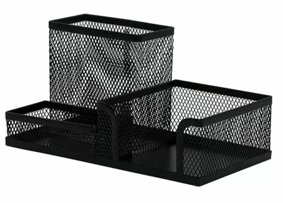 Suportul pentru accesorii de birou este un organizator multifuncțional ideal pentru depozitarea și ordonarea diverselor articole de papetărie, precum pixuri, creioane, rigle, agrafe, radieră sau notițe. Este conceput pentru a economisi spațiu și a menține biroul curat și organizat.