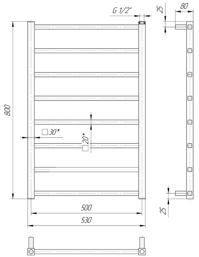 Uscător de prosoape Mario Tokio 800х530/500 Steel