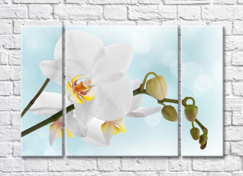 Pictură Magic Color White orchid branch with buds on a Blue background (500181)