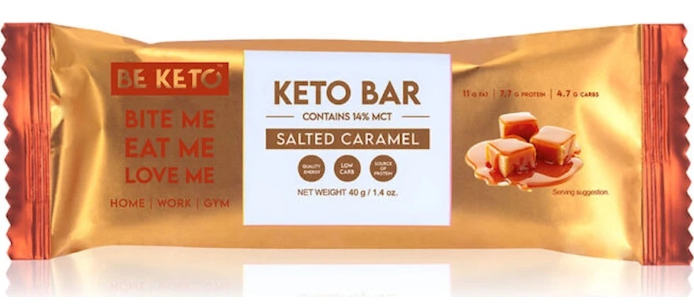 Be Keto Keto Bar Salted Caramel este ușor de luat cu tine în drum, la serviciu sau la sală. Acest baton permite să vă bucurați de gustul dulce fără a vă compromite dieta ketogenică sau low-carb.