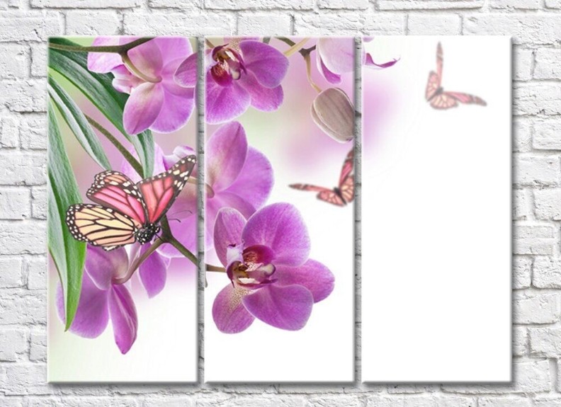 Pictură Gallerix Purple orchids and butterflies on white background (500755)