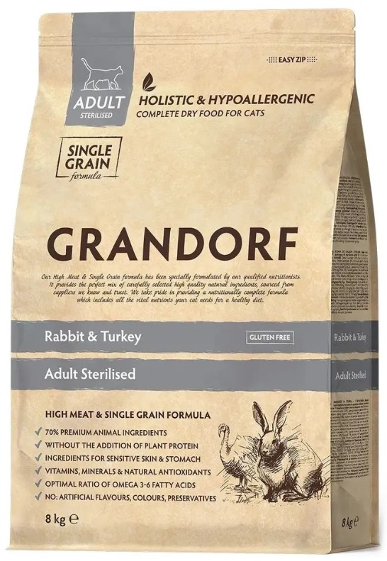Hrană uscată pentru pisici Grandorf Adult Sterilised Rabbit & Turkey 8kg