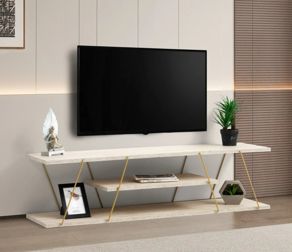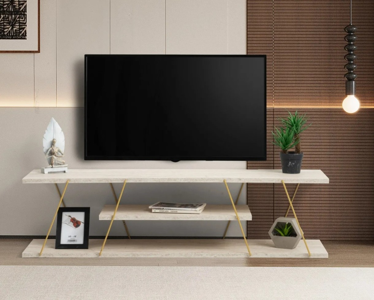 Comodă TV Trendy Canaz Travertin Gold 120x33x30cm
