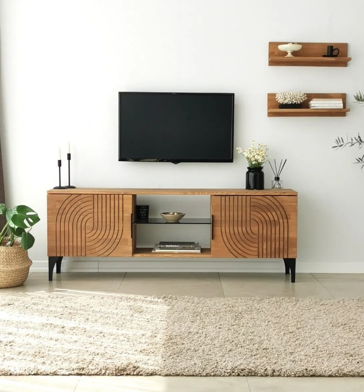 Această unitate TV este realizată cu atenție și precizie pentru a aduce stil și funcționalitate în spațiul de locuit. Construcția din lemn masiv de pin oferă o prezență caldă și plăcută, creând o atmosferă primitoare în orice încăpere.