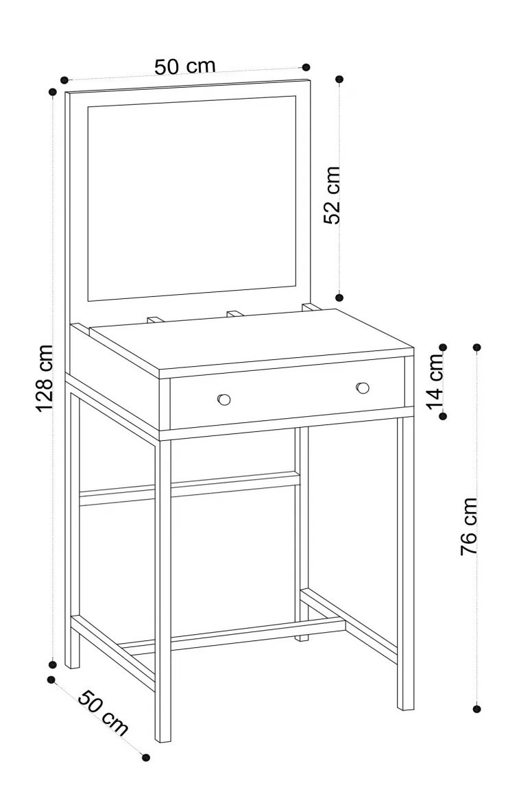 Confecționată din plăci aglomerate acoperite cu melamină 100%, această masă de machiaj emană eleganță și rafinament. Grosimea de 18 mm asigură durabilitate și longevitate, astfel încât să vă puteți bucura de această piesă mulți ani de acum încolo. Picioarele metalice adaugă o notă de farmec industrial, completând armonios orice stil de amenajare.