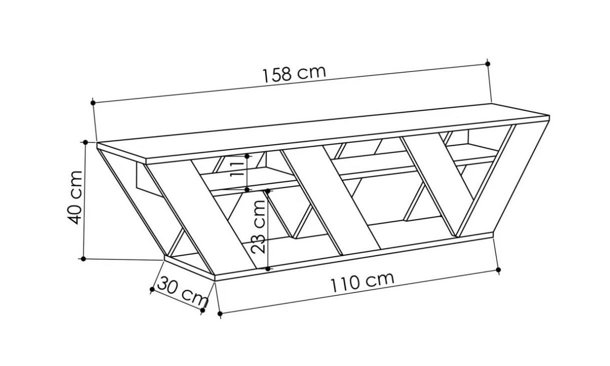 Suportul TV poate fi montat pe perete, economisind spațiu și oferind un aspect ordonat. Dimensiunile de 158 cm lățime, 40 cm înălțime și 30 cm adâncime îl fac potrivit atât pentru camere mari, cât și pentru spații reduse.