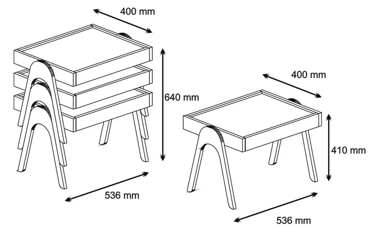 Vă prezentăm un set impresionant de mese cuib, un element funcțional potrivit pentru orice interior modern. Cu un design contemporan, mesele creează un accent vizual remarcat în orice cameră. Realizate din plăci aglomerate acoperite 100% cu melamină, acestea oferă atât eleganță, cât și durabilitate.