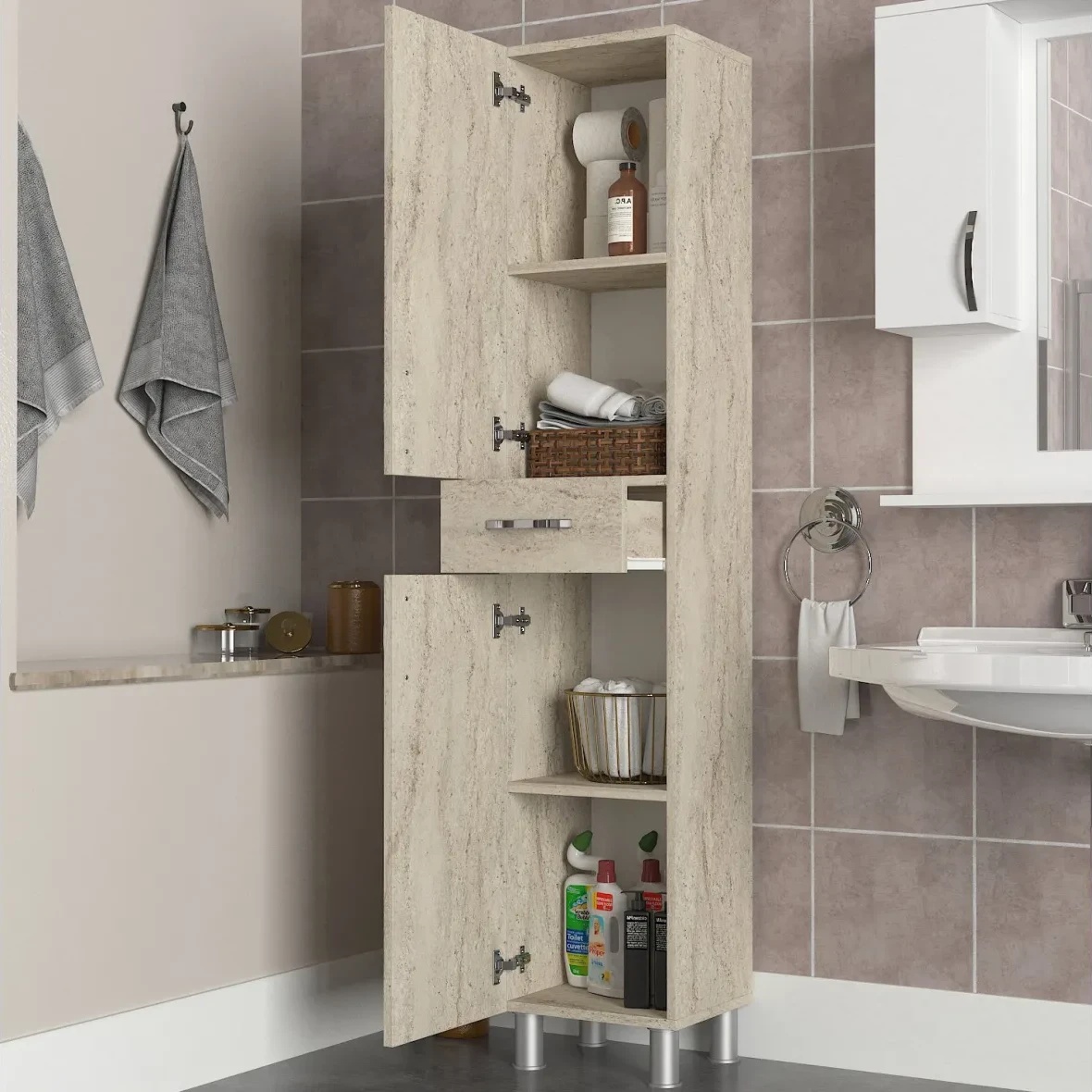 Dulap baie Trendy Selin Travertin 35x179x31,3cm GTR005664