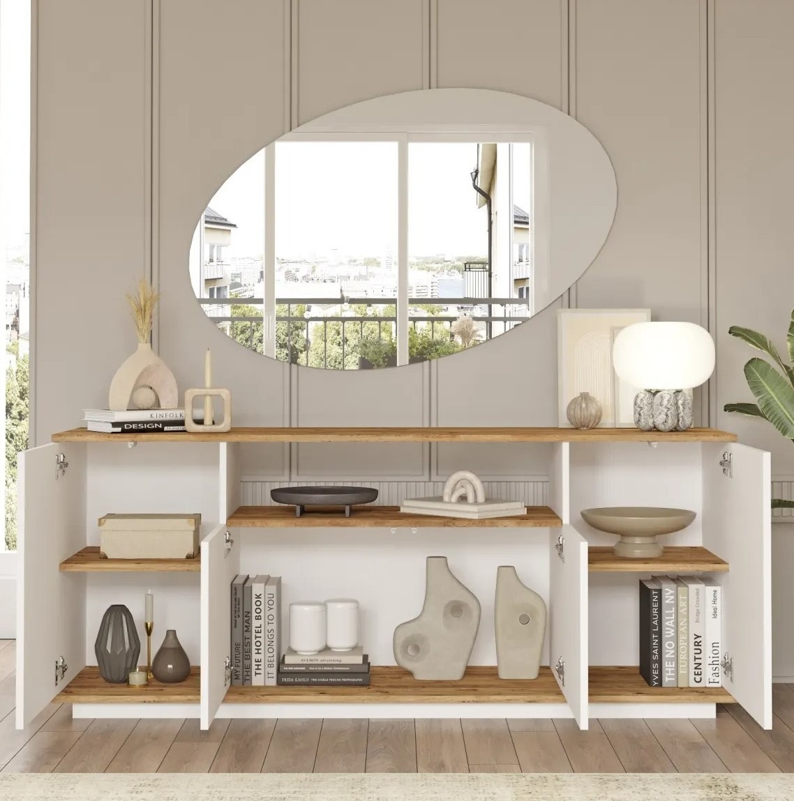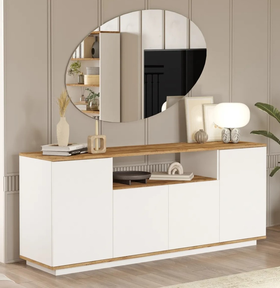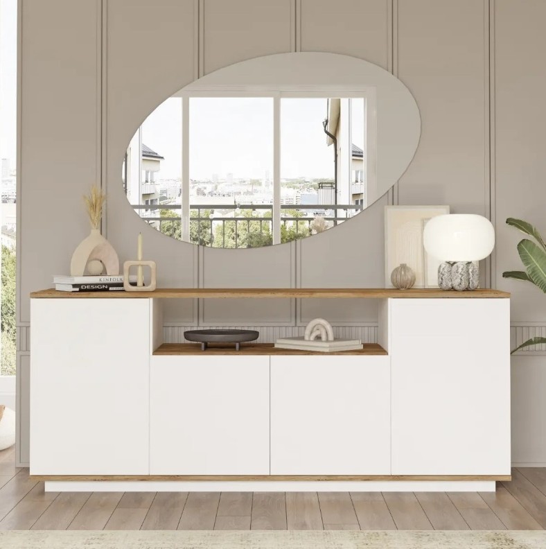 Realizată cu cea mai mare precizie, consola noastră este fabricată din panouri de particule de lemn 100% acoperite cu melamină, asigurând o rezistență și o durabilitate excepționale. Acest material de înaltă calitate garantează că consola dvs. va rezista testului timpului, rămânând la fel de frumoasă ca în ziua în care ați adus-o prima dată acasă.