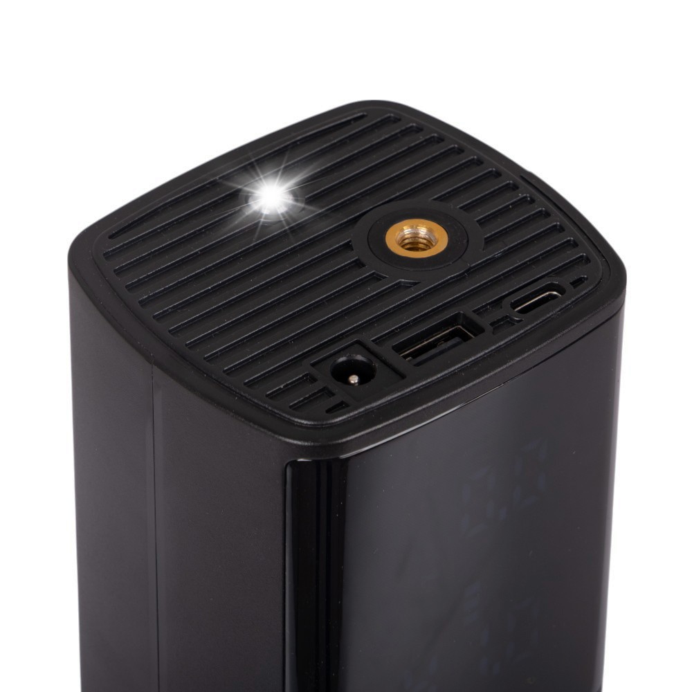 Забудьте о спущенных шинах. Этот электрический насос легко транспортировать, он оснащён множеством умных функций. Благодаря цифровому дисплею и четырём предустановленным режимам накачивания он подходит для всего — от автомобильных шин до мячей различных типов, точно регулируя давление воздуха. Всё, что нужно сделать, — подключить насос к автомобильной розетке, установить желаемое давление и включить его. Кроме того, он может использоваться как внешний аккумулятор, поэтому вы никогда не останетесь без энергии. А если вы находитесь в тёмном кемпинге, встроенный светодиодный фонарь осветит вам путь. Быстро. Умно. Надёжно.