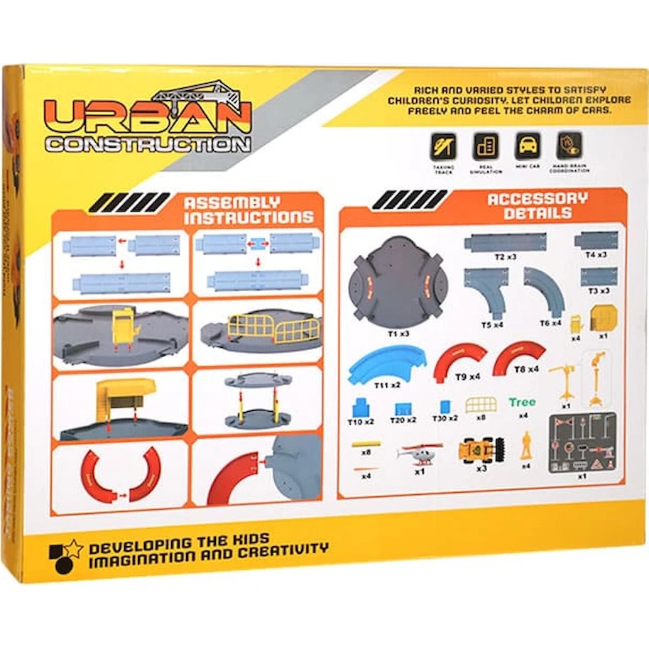 Setul de joacă „Construcție urbană” este un kit captivant pentru micii constructori, care include 71 de piese. Setul conține tot ce este necesar pentru a crea propriul șantier de construcții: turn de parcare, utilaje, drumuri, indicatoare rutiere și figurine.