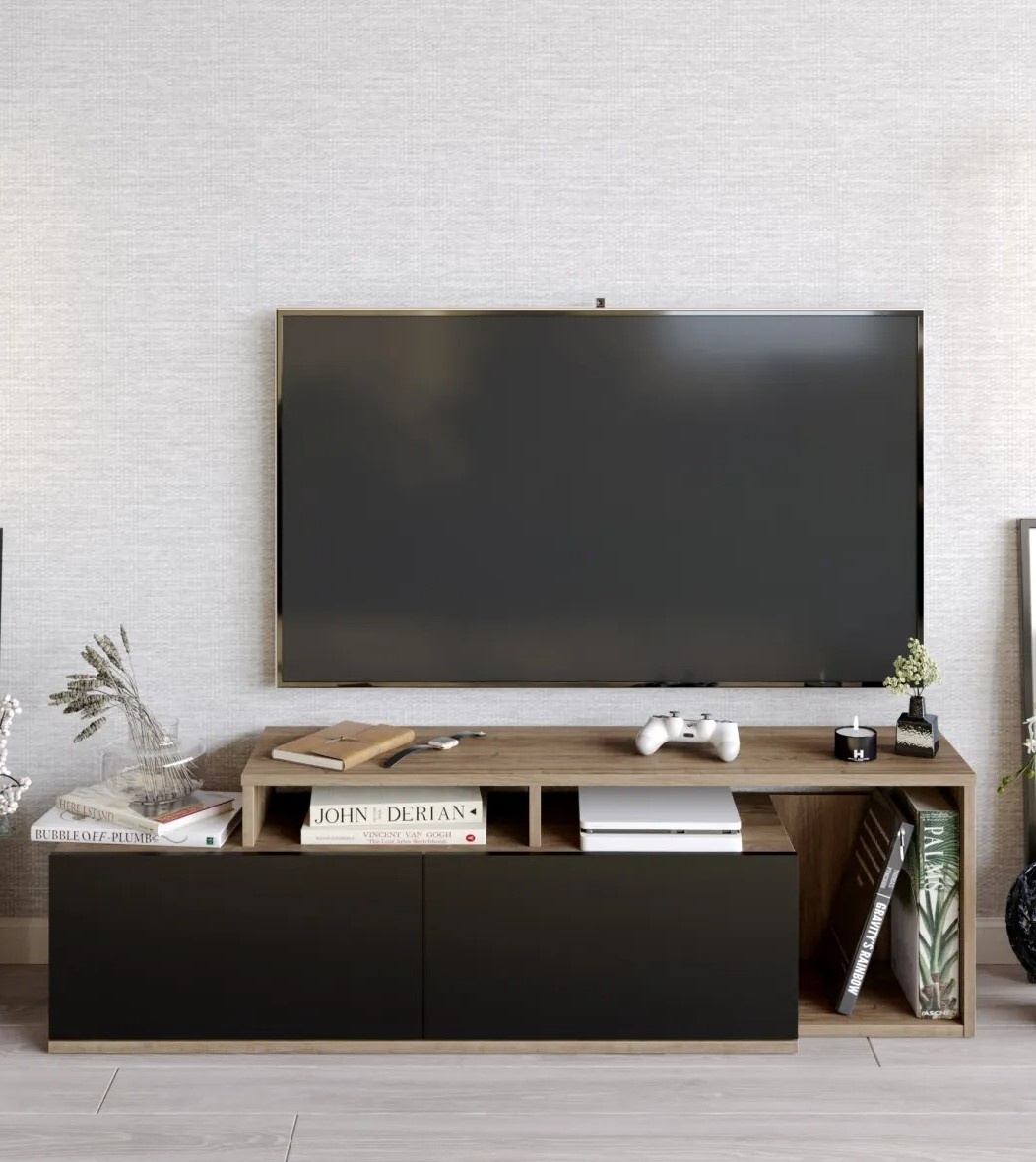 Comodă TV Trendy Nexera Walnut/Black 150x43x35cm GTR006392
