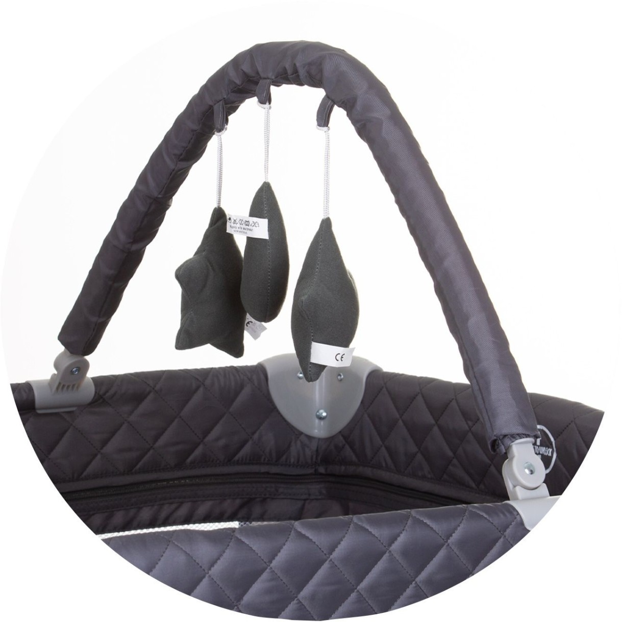 - Arc cu trei jucării moi pentru a distra bebelușul;