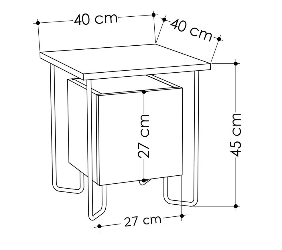 Spuneți adio noptierelor aglomerate! Noptiera dispune de un dulap spațios cu o înălțime de 27 cm, oferind suficient spațiu pentru cărți, reviste și alte lucruri necesare. Păstrați dormitorul organizat și ordonat cu această piesă de mobilier funcțională și elegantă.