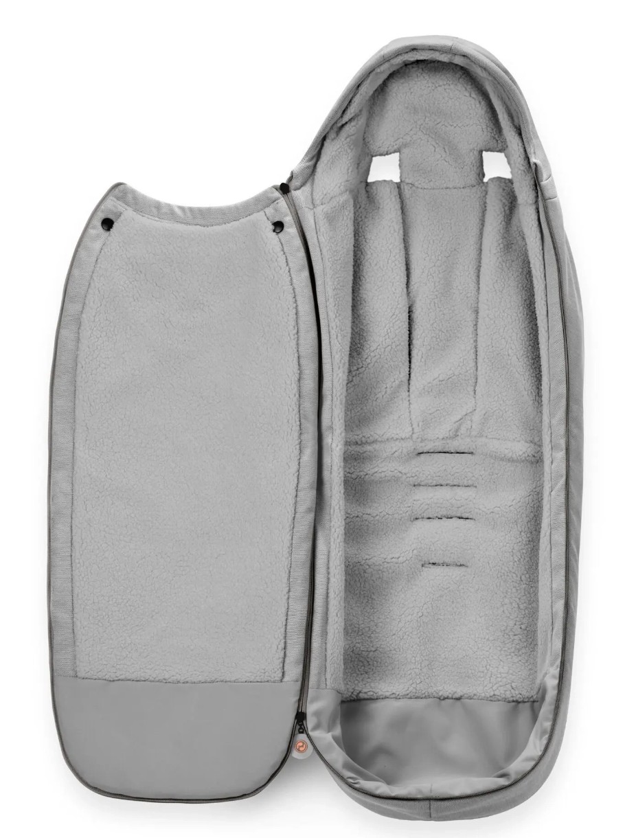 Faceți cunoștință cu companionul practic pentru plimbările de iarnă – husa de picioare Cybex Gold. Aceasta menține micuțul cald atunci când afară este frig, datorită căptușelii moi și confortabile din fleece. Se atașează rapid la căruciorul Cybex Gold și se scoate ușor pentru curățare. Potrivită pentru spălare la mașină pe ciclu delicat și uscare pe sârmă.