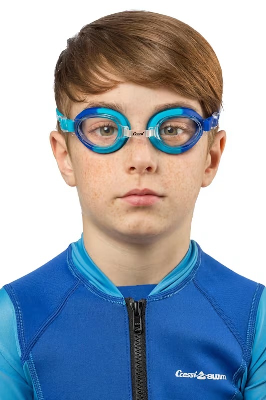 Ochelarii de înot Cressi Starfish Blue/Azure (XDE030024) sunt concepuți pentru copii cu vârsta aproximativă de 4-8 ani. Au garnituri moi din silicon care asigură confort și etanșare bună pe față. Lentilele sunt din policarbonat, rezistente la impact și potrivite pentru utilizare zilnică. Oferă protecție UV și tratament anti-aburire pentru vizibilitate clară sub apă. Cureaua este din silicon și se reglează ușor cu clipsuri laterale pentru fixare sigură. Designul este ușor și confortabil, adaptat pentru fețele copiilor mici.Sunt ideali pentru piscină, cursuri de înot și joacă în apă.