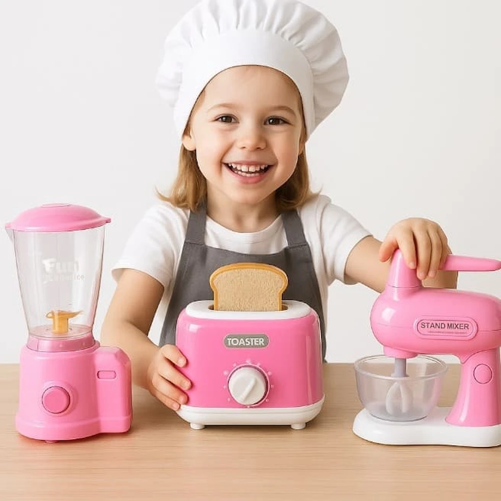 Aparatele miniaturale și accesoriile incluse fac jocul realist, stimulează imaginația și îi permit copilului să se simtă un adevărat ajutor în casă.