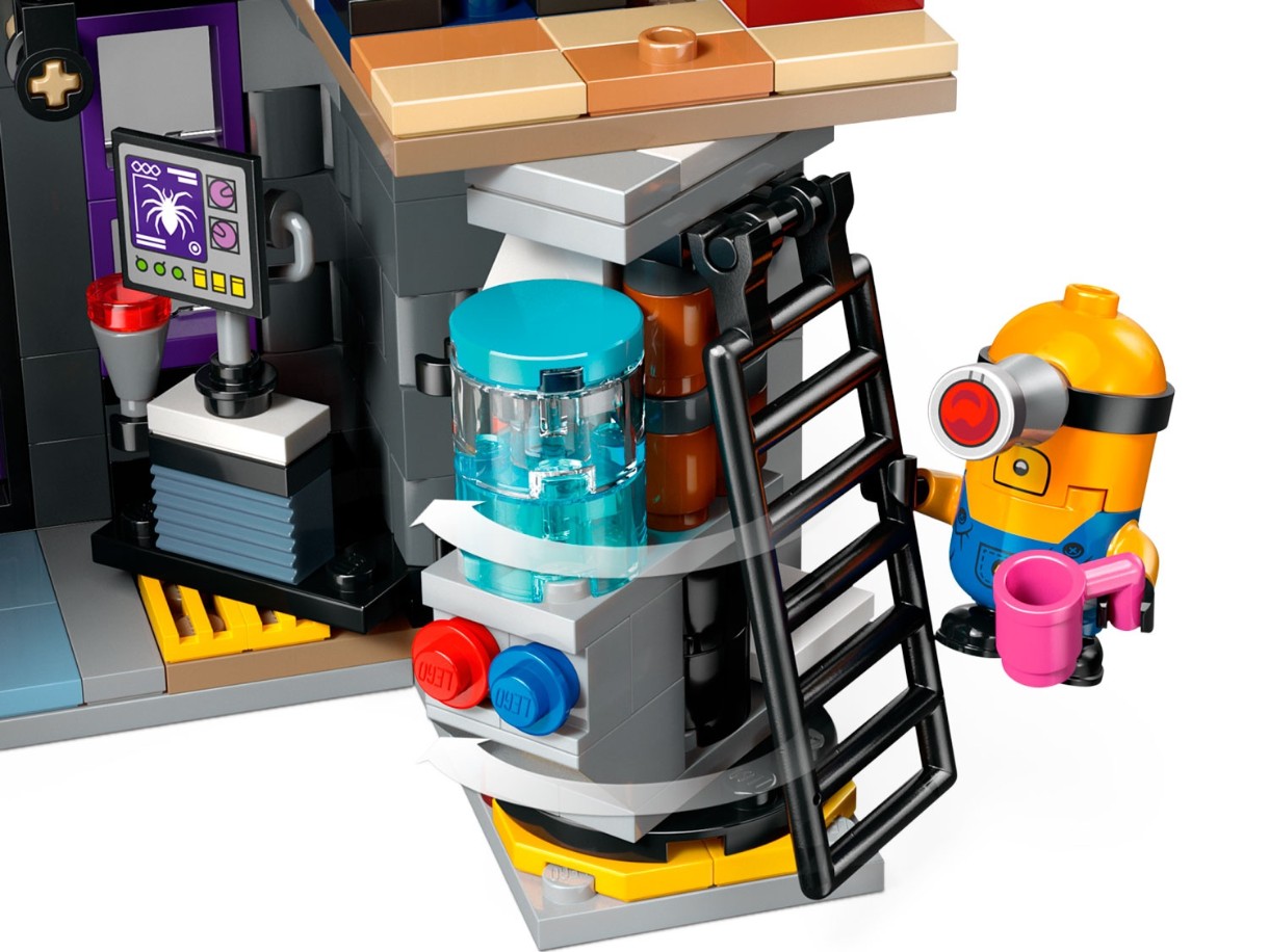 Retrăiește distracția filmelor Minions cu LEGO® MINIONS Minions și Conacul Familiei lui Gru (75583). Casa emblematică a lui Gru prezintă elemente emblematice din filme, cum ar fi o canapea roșie, un șemineu, un dormitor cu tematică de rachete, un laborator Minion plin de gadgeturi, o toaletă și o cutie pentru depozitarea fursecurilor. Alături de casă se află o casă în copac vibrantă, cu o zonă de luat masa cu tiroliană care duce la un spațiu de petrecere și o ascunzătoare decorată cu flori, jucării și lumânări. Setul include 6 minifigurine - Gru, Lucy, Margo, Edith, Agnes și Baby - și 3 figurine Minion mari, construibile: Mal, Jerry și Tim. Acest set de joacă este plin de distracție și, cu atât de multe personaje și accesorii, această jucărie cool pentru copii este cadoul perfect pentru orice ocazie.