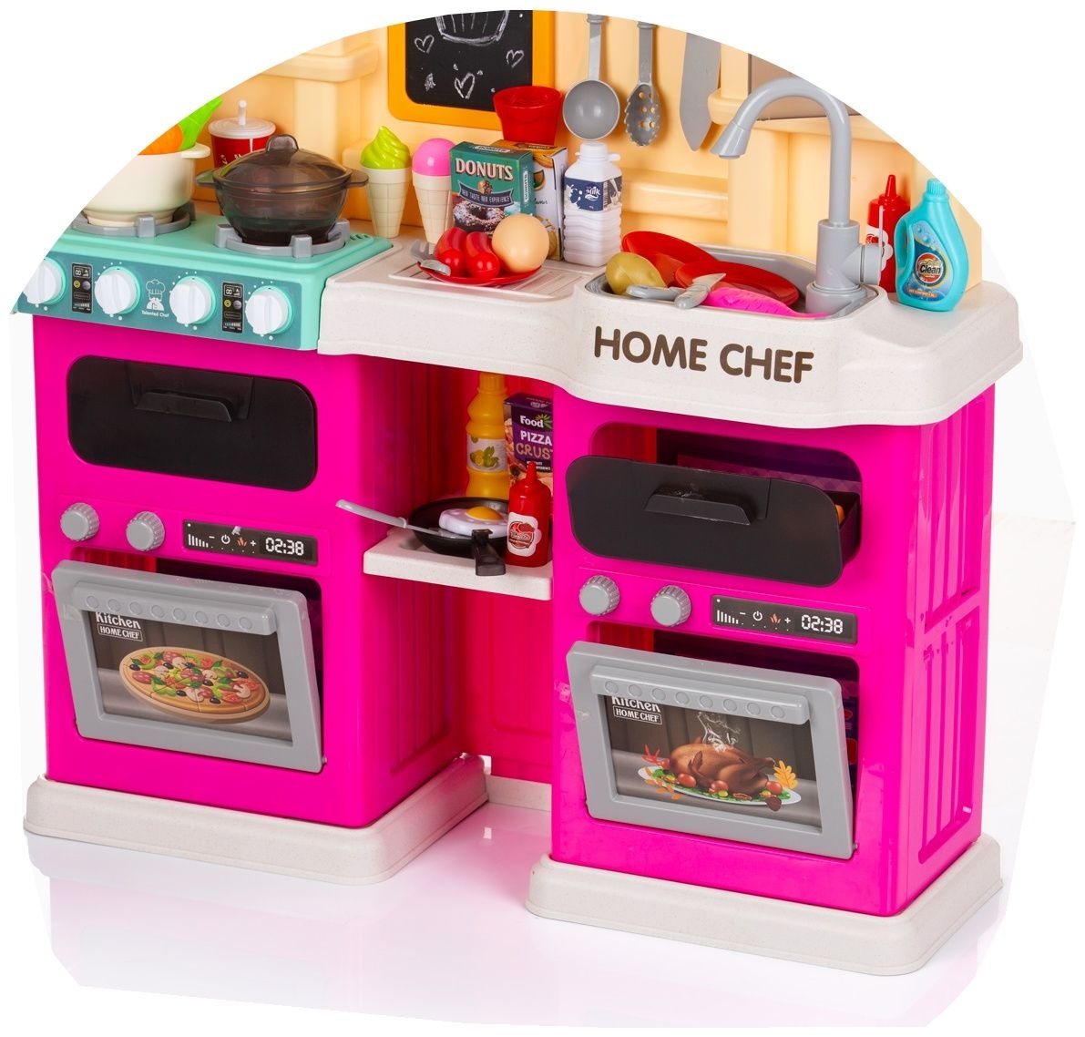 Set de bucătărie interactiv și distractiv pentru jocuri de rol - pentru toți micii pasionați de gătit! Cu diverse efecte realiste - sunete, lumini, efect de abur, efect de apă curgătoare, care vor oferi ore întregi de joacă distractivă acasă. Cu acest set de bucătărie, copiii se vor familiariza cu activitățile și procesele de bază din bucătărie, distrându-se în același timp. Jocul de rol stimulează imaginația copiilor, le îmbunătățește abilitățile motorii și încurajează dobândirea de noi cunoștințe.