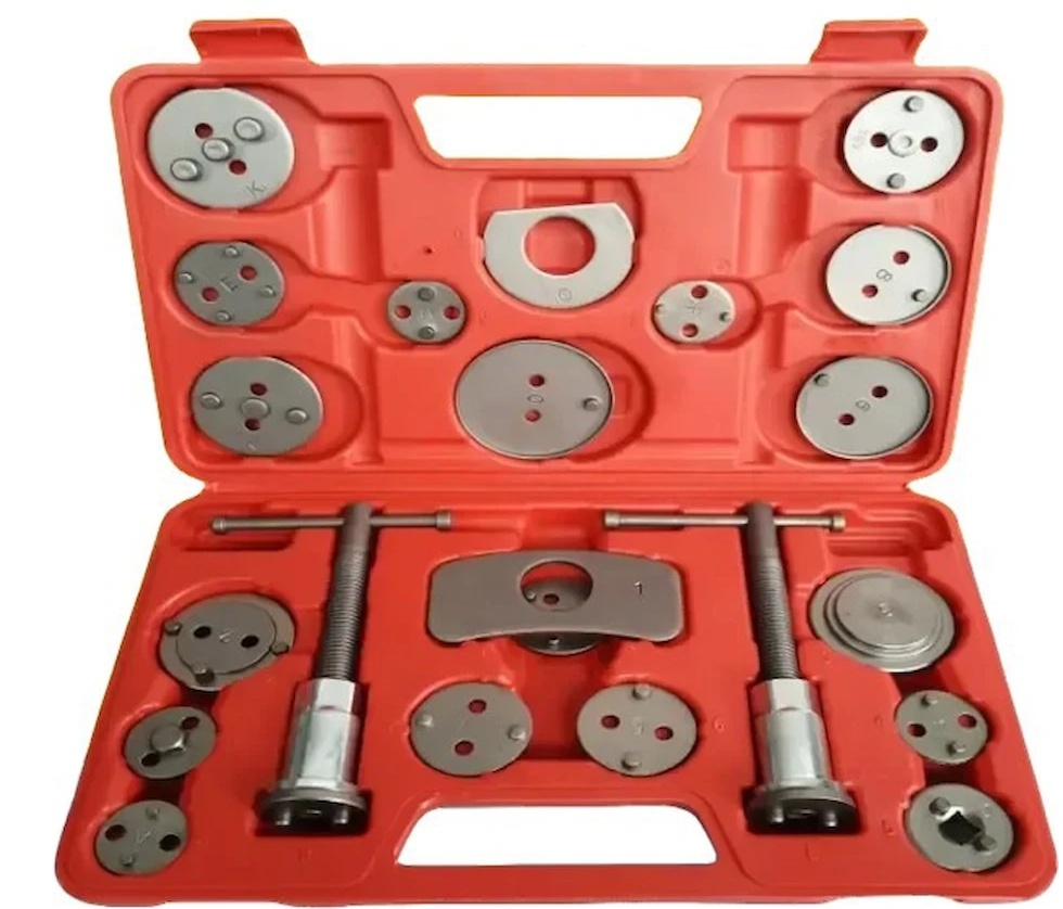Acest set pentru purjarea etrierelor de frână include 22 de piese, oferind utilizatorilor toate uneltele necesare pentru înlocuirea completă a plăcuțelor de frână, inclusiv ansamblul șurubului de sprijin și placa de montaj.