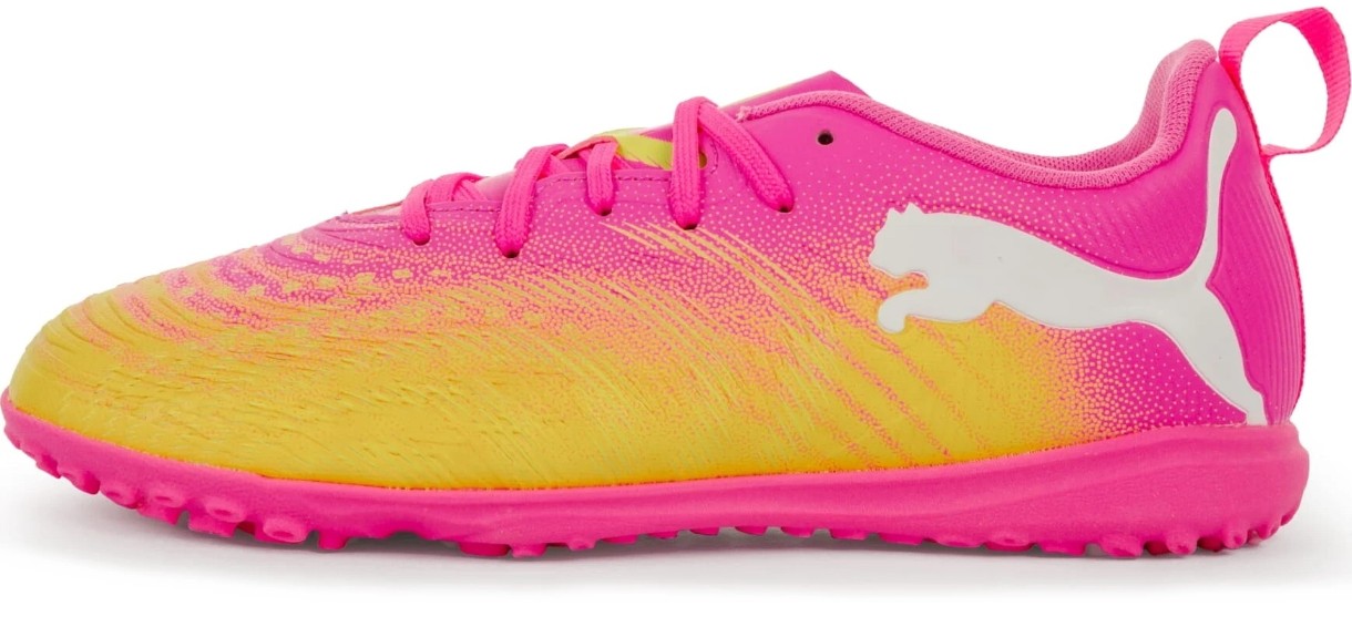 Puma Future 9 Play TT Jr - sunt ghete pentru tinerii jucători care iubesc driblingul, mișcarea și încrederea în fiecare atingere. Modelul este creat pentru suprafețe naturale dure și gazon artificial (TT). Superiorul sintetic durabil cu o suprafață texturată combină rezistența la uzură și contactul precis cu mingea. Limba subțire și elastică împreună cu șireturile asigură o potrivire confortabilă și o fixare sigură a piciorului.