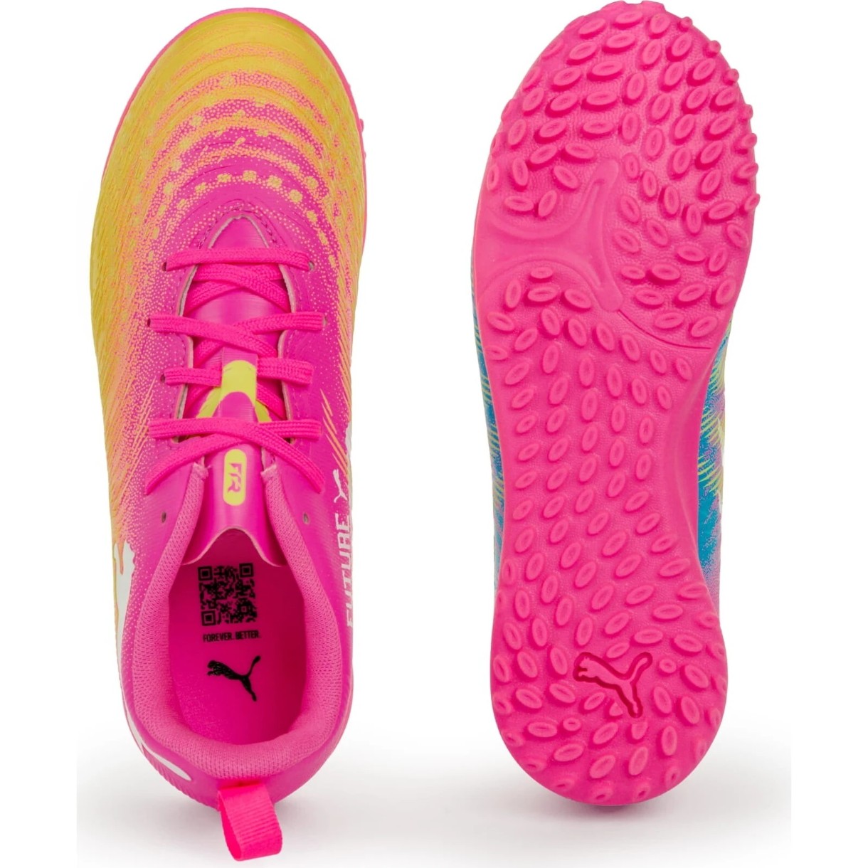 Ghete pentru fotbal Puma Future 9 Play Tt Jr Poison Pink/Sun Stream/Bright Aqua/Puma White, s.36