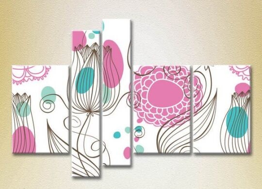 Pictură Rainbow Polyptych Pink Turquoise Floral Background 04 (2231797)