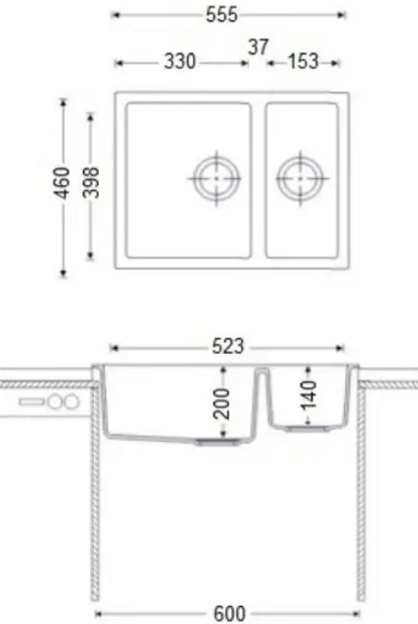 Chiuvetă de bucătărie Fabiano Quadro 56x46x15 Beton