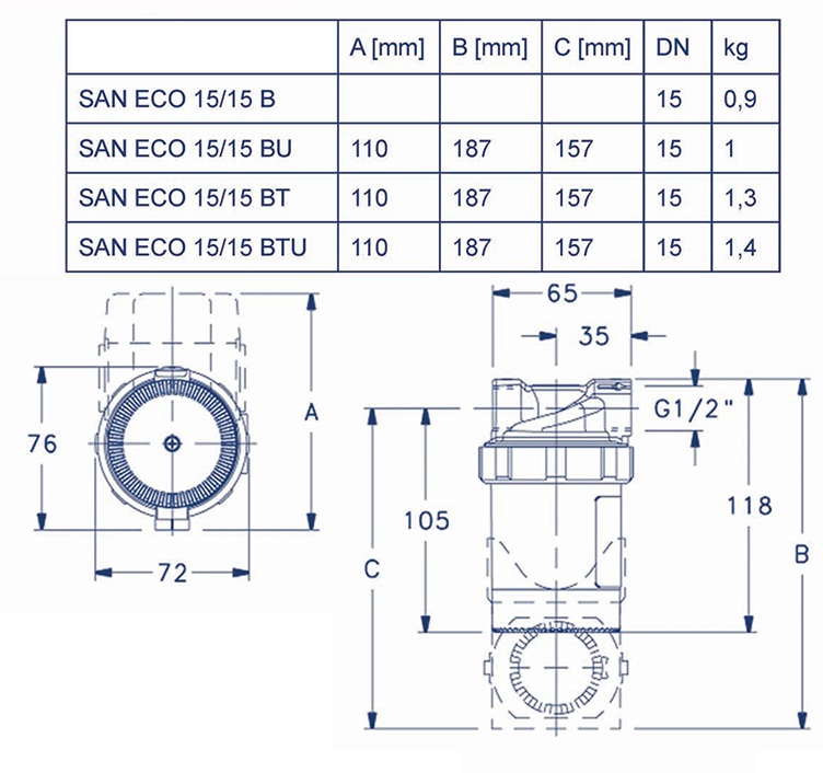 Pompă de circulație IMP Pumps SAN Eco Pro 15/15 BU