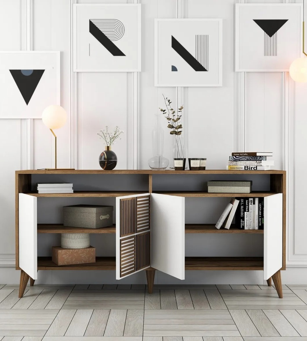 Îmbrățișați noutatea consolei noastre moderne, concepută pentru a vă înălța spațiul de locuit cu farmecul său contemporan. Liniile sale curate și designul minimalist creează un farmec vizual captivant, care cu siguranță vă va impresiona oaspeții.