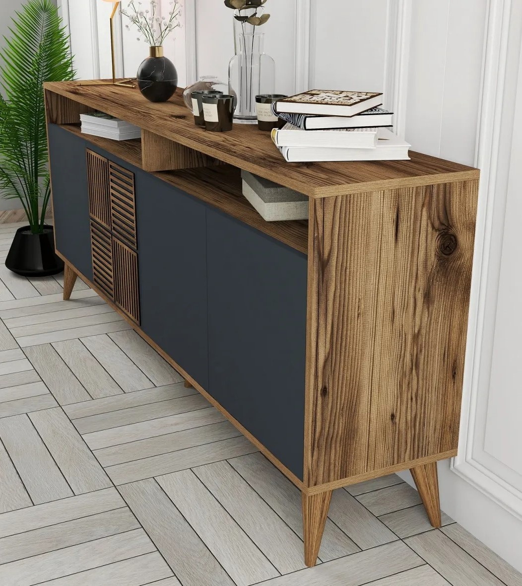 Realizată cu cea mai mare grijă și atenție la detalii, consola noastră este fabricată din panouri de particule acoperite cu melamină 100%, asigurând durabilitate și longevitate. Grosimea de 18 mm adaugă robustețe, ceea ce o face o piesă de mobilier de încredere pentru anii ce vor urma.