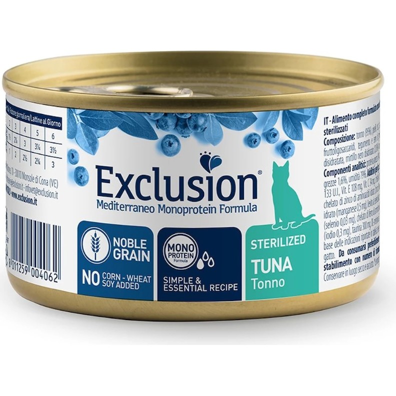 Hrană umedă pentru pisici Exclusion Noble Grain Adult Cat Sterilized Tuna 85g