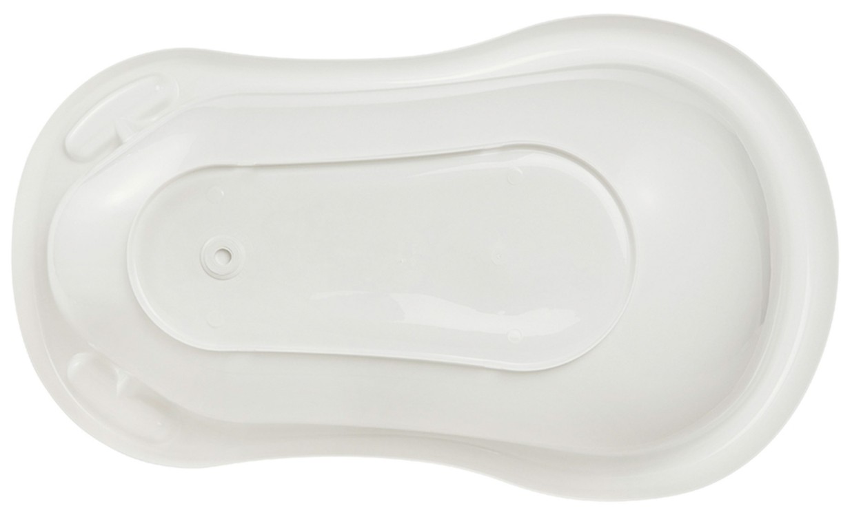 Două compartimente încorporate pe marginea căzii oferă spațiu pentru șampon sau săpun pentru copii, astfel încât să puteți depozita totul la îndemână. Pe fundul cuvei se afla o scurgere practica care poate fi deschisa sau inchisa cu dop de cauciuc. Acest lucru face drenarea căzii deosebit de ușoară. După îmbăierea copilului, cada poate fi ștersă cu burete umedă .