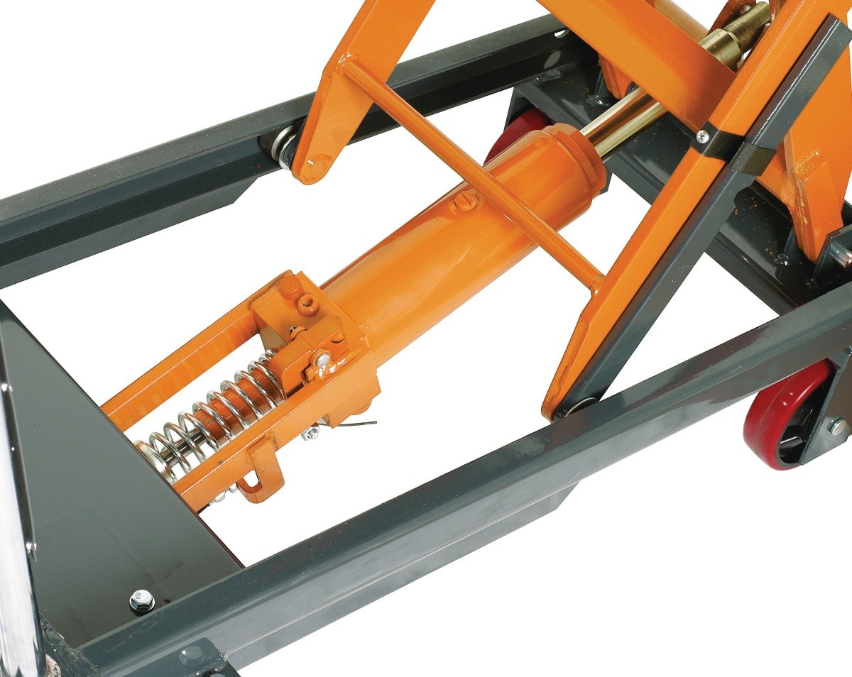 — Aceasta masa hidraulica cu lift este dotata cu un cilindru hidraulic ce faciliteaza ridicarea cu efort minim a sarcinii