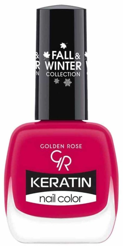 Lacul de unghii Keratin Nail Color de la Golden Rose este o formulă rezistentă, intens pigmentată, îmbogățită cu keratină, care asigură o acoperire perfectă și un luciu elegant al manichiurii.