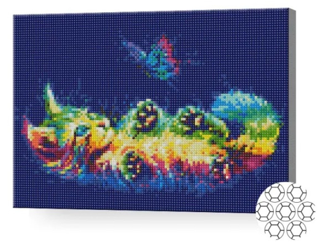 Pictura cu diamante după numere Art Gallery Premium Неоновый котенок и бабочка 30x40cm (XQB74389)