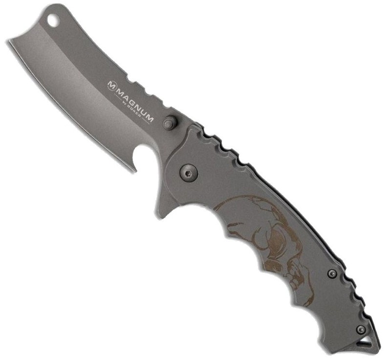 Böker Magnum Mortem 01RY217 este un cuțit pliabil EDC cu design agresiv și tematică decorativă, potrivit pentru utilizare zilnică și colecție.
