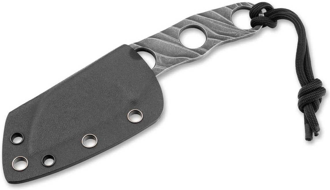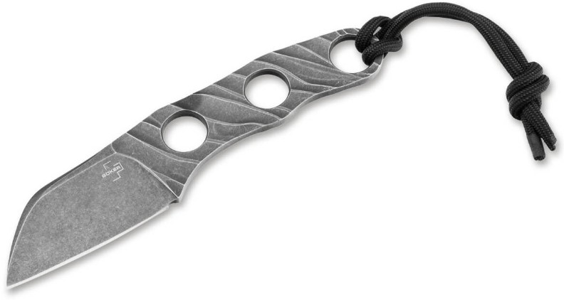 Cuțitul Böker Plus Kazhan 02BO069 este un neck knife compact, conceput de Alexander Krava. Lama este realizată din oțel D2, cunoscut pentru rezistența ridicată la uzură. Construcția este de tip skeleton, ceea ce îl face foarte ușor și minimalist. Are o lamă scurtă tip sheepfoot, potrivită pentru tăieri controlate și precise. Este livrat cu teacă Kydex și lanț pentru purtare la gât. Designul este gândit ca un cuțit de rezervă pentru utilizare zilnică sau EDC. Este apreciat mai mult pentru portabilitate și simplitate decât pentru lucrări grele.