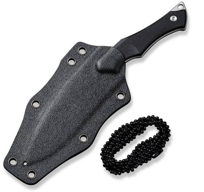 Greutatea redusă și dimensiunile compacte îl fac ușor de purtat pe gât sau în echipament, iar tecile incluse din Kydex oferă multiple opțiuni de prindere pentru transport.