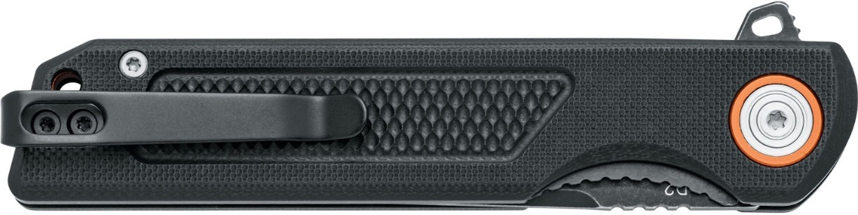 Cuțitul pliabil Fox Knives Black Momentum (BF‑769) este un model eficient de tip EDC, conceput pentru utilizare zilnică și activități outdoor. Lama sa de 9 cm este fabricată din oțel D2, oferind o duritate ridicată și o bună capacitate de păstrare a muchiei. Finisajul black washed cu acoperire PFTE îi conferă un aspect robust și îi protejează suprafața împotriva coroziunii. Mânerul negru din G10 este rezistent și oferă o prindere fermă în mână, chiar și în condiții umede. Mecanismul cu blocare liner‑lock și deschiderea prin flipper permit o folosire rapidă și sigură a lamei în orice situație.